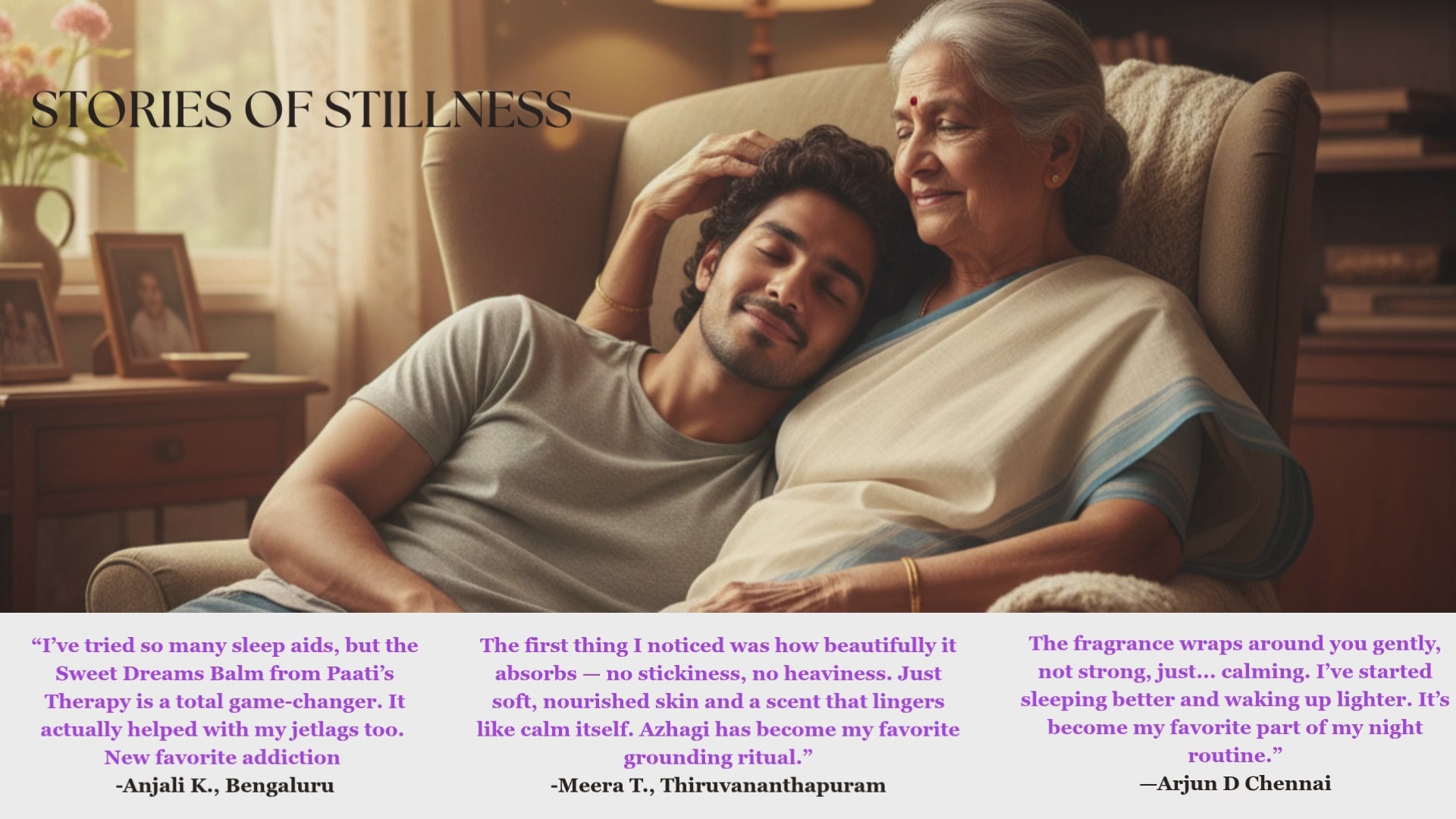 Paati’s Therapy brings you the comfort of deep, natural sleep—like drifting off as a child, safe and held.